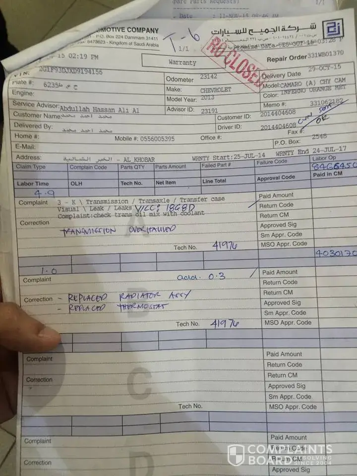 The problem was under control until I decided to sell my car since am leaving the country for good. The price I put for my car was always unaccepted by the buyers when they check through your local dealer that they overhauled the transmission under warranty at a very low mileage. They blame me for why I didnt force gm to replace the whole transmission rather than overhauling it. I dont blame them since the overhauling was in a very sensitive part of a super sport car and who would guarantee that the transmission will not be damaged later when they are out the warranty and the buyer will have to pay the charges for a new very expensive transmission. I am completely disheartened and need someone to contact me through my email where I can send him or her my story with your local dealer and how they treated me rudely.