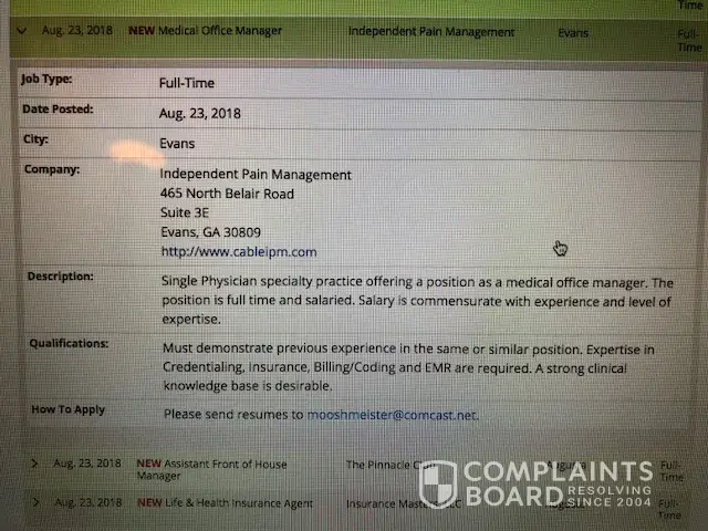 My name is james getts, former medical practice manager for todd d. Cable, md, llc, d/b/a independent pain management.