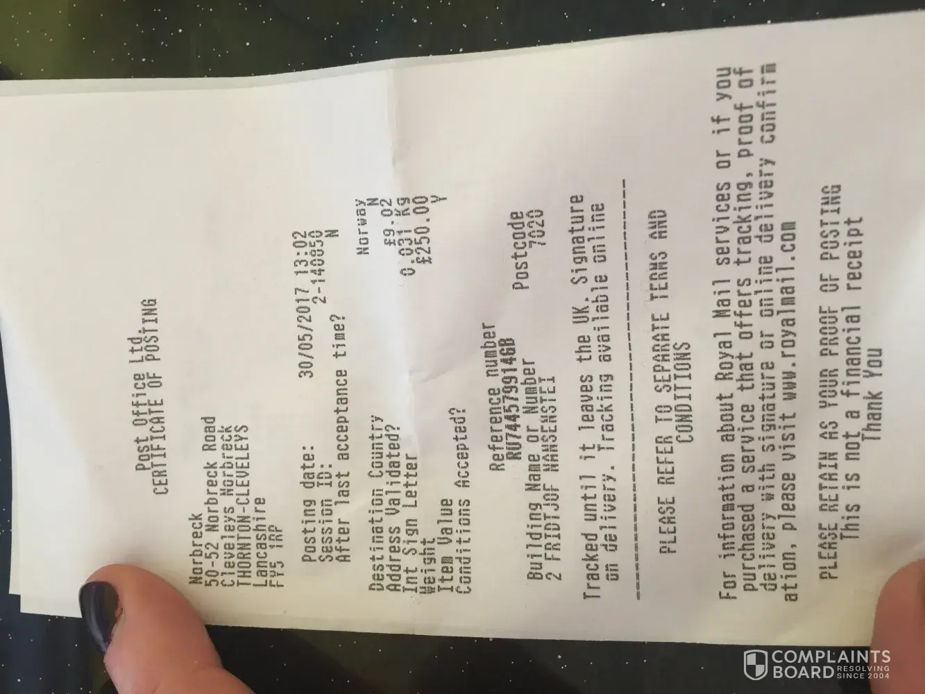 I have spoken with Royal Mail who confirm the post was tracked until it left the UK on 01st June. I am also shocked that you seem to have the tickets and have no idea how this has happened if the tickets were sent to NORWAY.