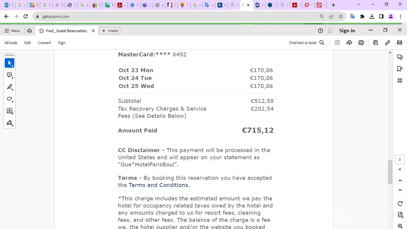 I booked a room in Paris for 23-26 October 2023 from them. They showed 10 Euros under the other rates on Google maps, which fit into my organisation's price threshold. Without any prior notification, and without my noticing it, they tagged on 202 Euros to my bill. I only noticed the day before the reservation. The invoice says that it is for hotel fee...