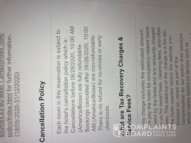 Getaroom cancelation policy says we had to cancel by 8/28/2020 — — — before we even checked in — - obviously an impossible task.