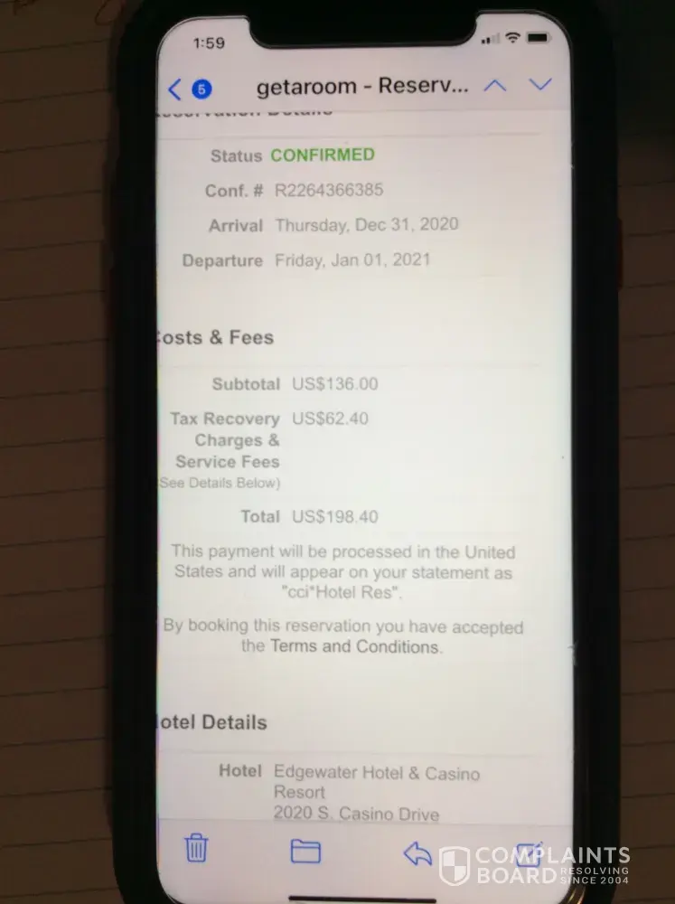 To all reading this review, do not be confused getaroom did not resolve the issue. Their response is to issue a refund of $437.48 for the Tax Recovery Charges and Service Fees". They were deceptive on a "recorded line, I specifically asked for the total charges and they gave me a per night rate. what I expected to be a $1077.00 vacation turned out to be $3, 818.48! Buyer beware!
