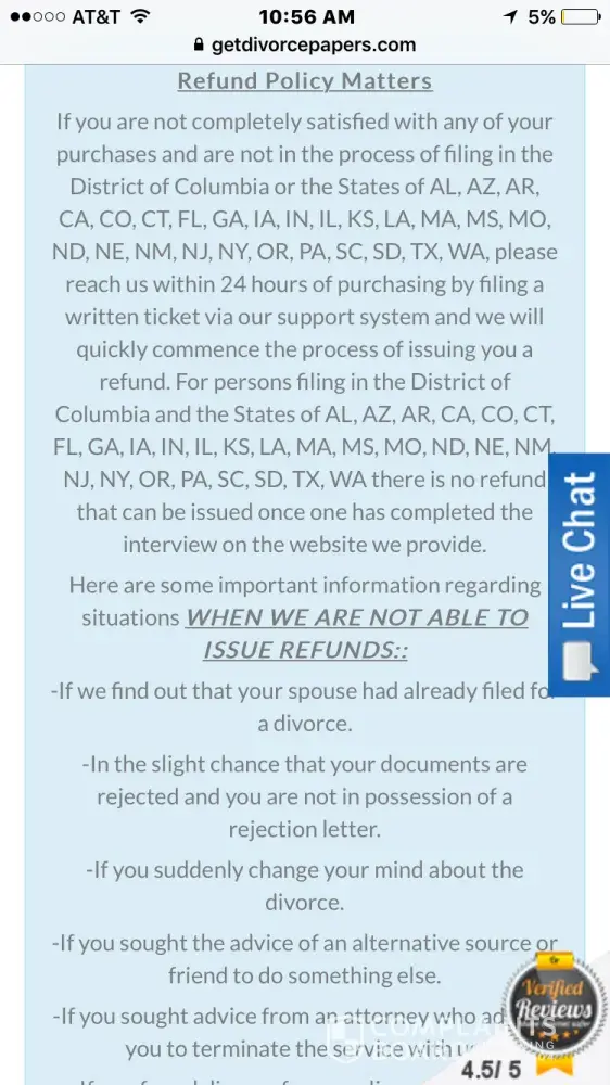 There a scam… FinePrint tells you they're not really providing divorce papers… Just a marital settlement agreement paper… So when they send you out dated and altered paperwork that they provide you, and the paperwork is completely wrong… And rejected by the court… Don't ever expect to get your money back ... when I contacted them and told them that they had sent me altered paperwork their reaction wise we will correct the issue and send you new paperwork. I was then informed that the divorce papers were gift, according to Evelyn my caseworker and that I needed to provide them with updated paperwork from the state of Missouri…