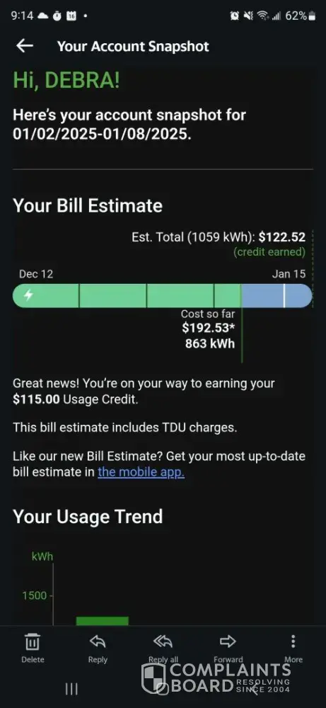 My contract price is fixed but, will have a discount if below 2000 kWh. So, during Labor Day I was out of town from Sat early am and didn’t return home until late on Monday. Somehow my bill that month was similar to previous month. I will always get a few kWh above 2000….like 2010 and 2022. Only my first month was below because you can cancel without penalties within the first 3 days. Also, under fix plan my rate should match the amount set by the terms of the plan…however they will write in * small print a higher rate by about 7 cents per kWh and said allow by law? Really?…Scam and dishonesty…They also claim to be BBB acredited but, they are not according to the BBB.