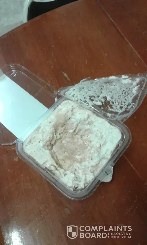 I purchased chicken salad Giant Eagle last night, 9-28-18. As I was making my sandwich today, 9-29-18 the entire center of the container was filled with pink, raw chicken. I am fortunate that I did not eat it yet. I have photos to forward to you. It is extremely disturbing.