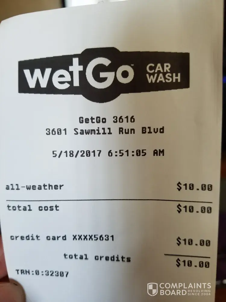 Recently this week I went to get fuel and a car wash in twinsburg Ohio. When getting gas I purchased my car wash and was not given a code. This meant that I had to purchase a car wash after I already paid for one. I was double charges and would like to have my $10 back. I would like my money back because if not I will not return to getgo. I do not appreciate this happening but will be more then fine if I get my $10 refunded. Thanks!