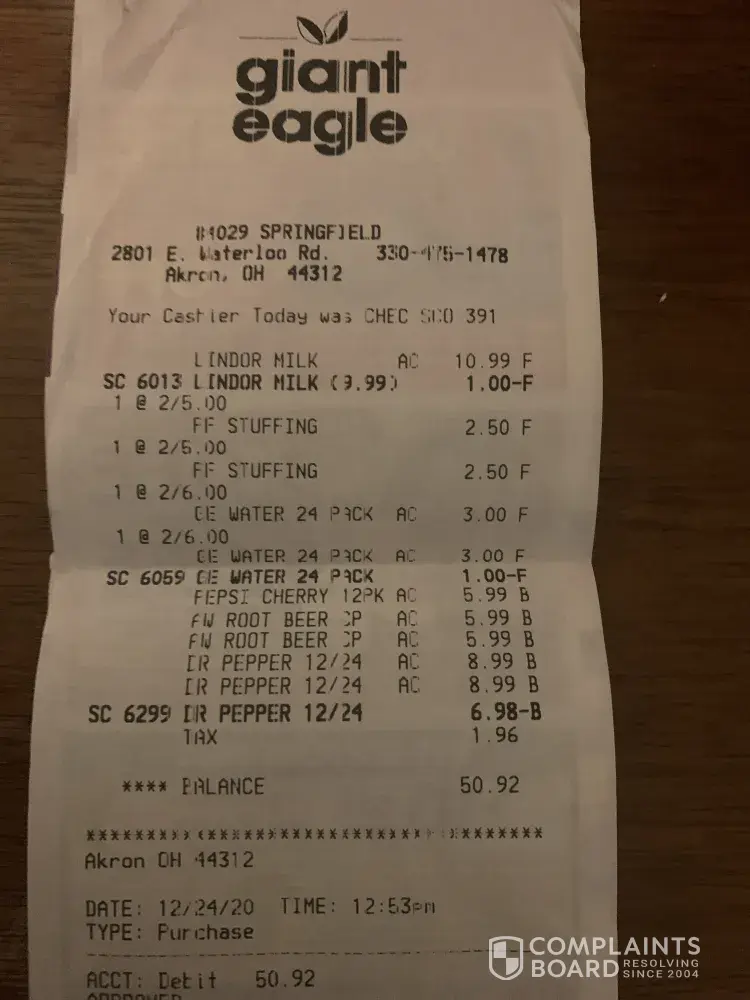 I have been shopping at giant eagle in frederick on RT 40 for over 20 years. Saturday I went to pick up my prescription I also wanted to purchase 6 sodas when I went to the counter the lady would not help me purchase the soda she said only 5 idems.so I told her I would put back 1 soda and she still told me no,