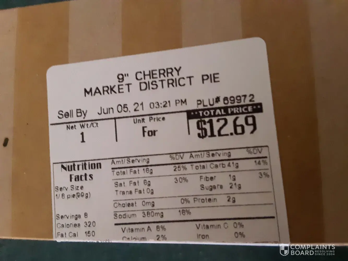 Read full complaint9" cherry market district pie