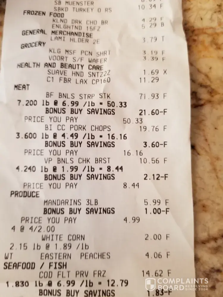 I bought a package of ground beef and upon a closer inspection (at home), the package was mislabeled. The price reflected that of pork chops (and not ground beef) which was higher.