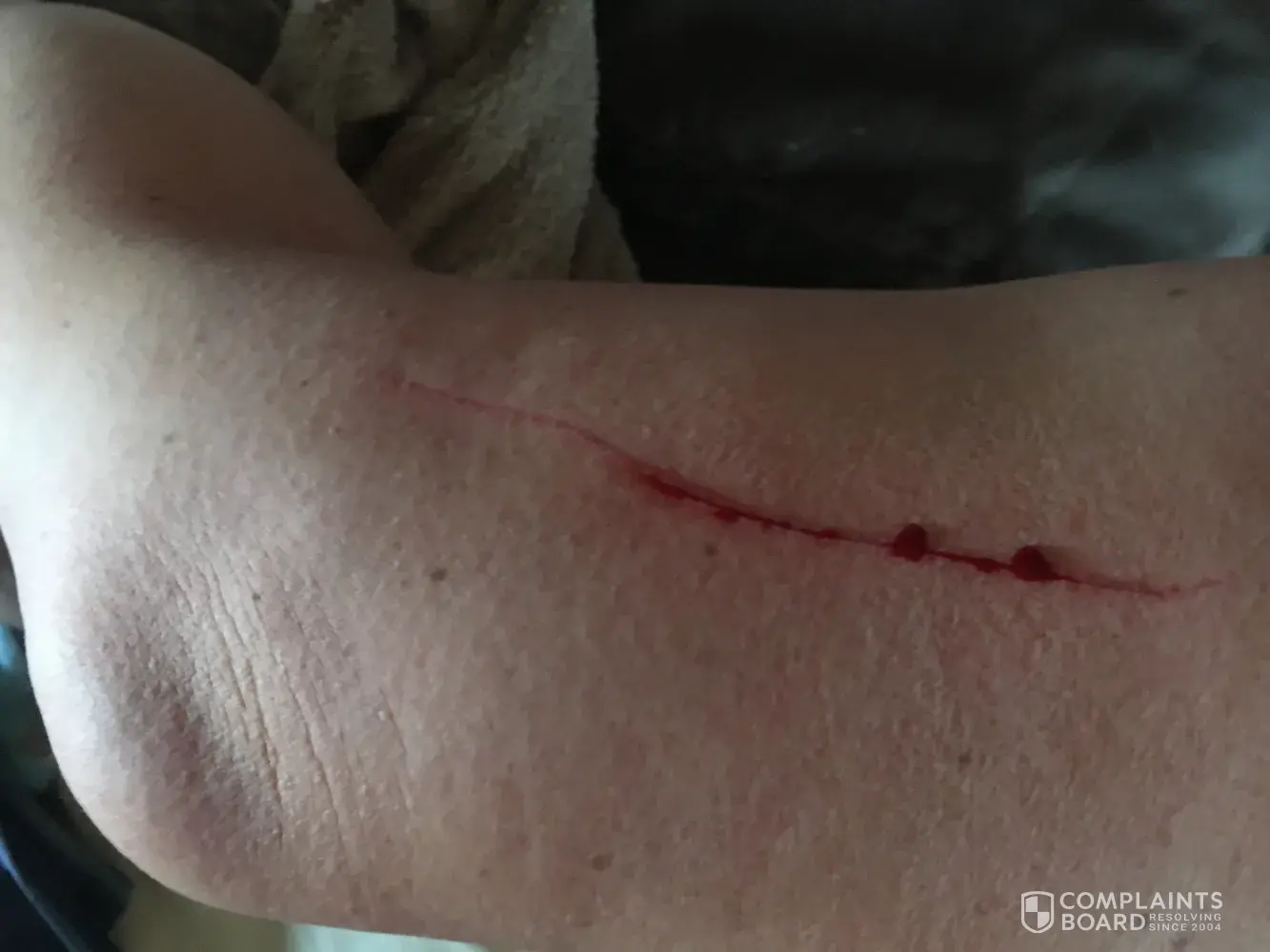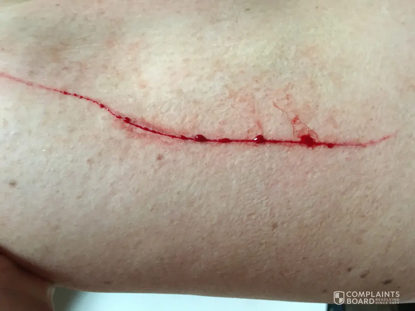 I was cut badly. See photos attached.