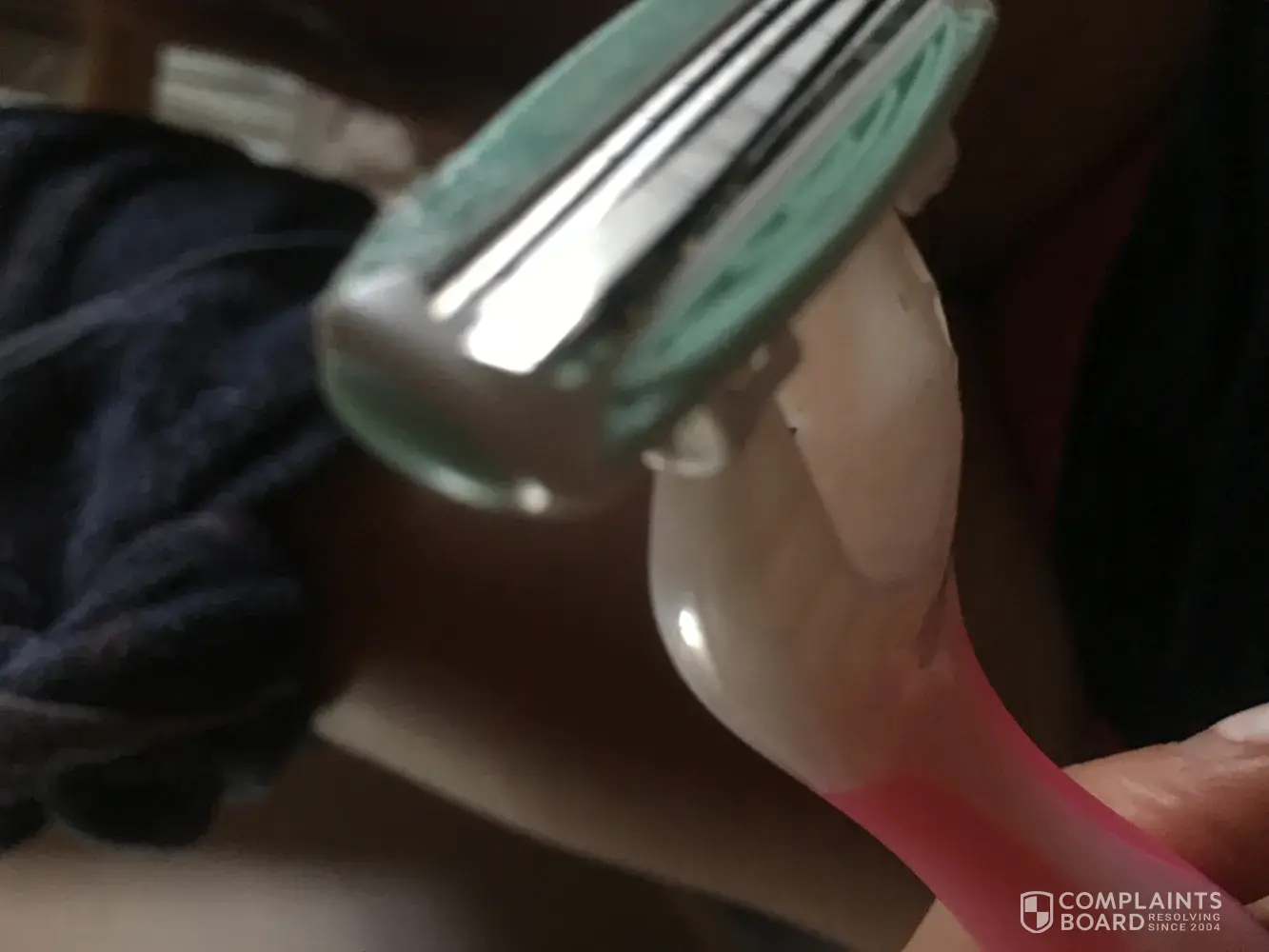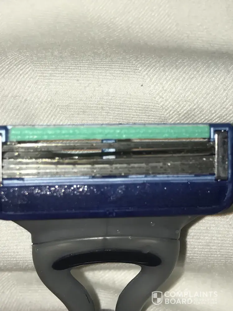 I used a brand new razor in the shower last night ... I didn't in all fairness check the blade but on a new razor Who would ? Think the pictures say it all ... The razor was damaged !...resulting in not just a nick but a nasty graze/cut ! ...I am totally disgusted how this managed to get through product control . The potential damage this could have caused could be a lot more . I have posted on social media to get people to check their razors before use ... I do not have the original packet they came in I'm afraid but kept the damaged razor ...I am left with a long ugly graze that not only is sore but that looks awful especially in this weather when wearing shorts and other clothes which can potentially expose this . The later two pictures were taken this morning ...