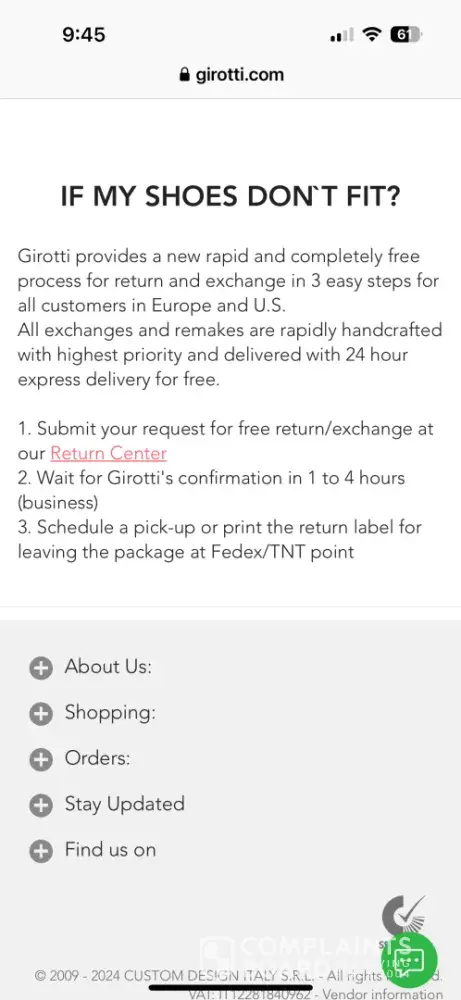 Disappointing Experience with Girottishoes: Poor Customer Service and Hassle with Returns