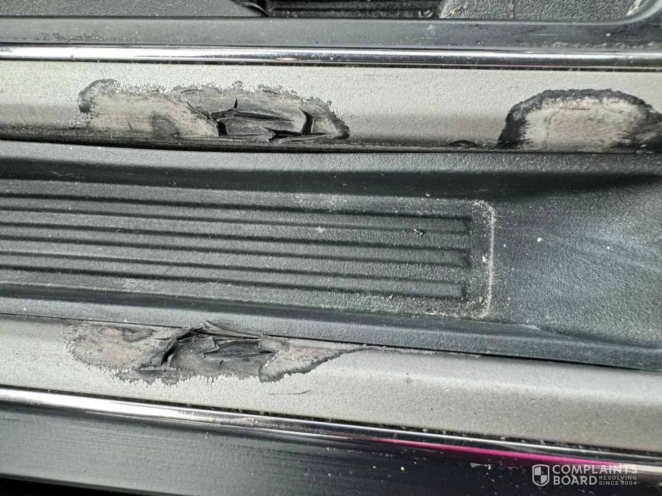 Regrettably, I recently experienced an issue where the product, specifically the heat control mechanism on my air conditioning system, leaked onto a plastic part of my car. Consequently, the plastic has sustained significant damage. I am particularly concerned about this occurrence as my car is relatively new, and the damage incurred may have a negative impact on its overall value.
