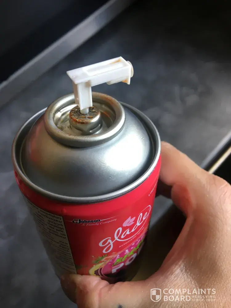 This is not the first time I've had issues with Glade products, which have been thrown away and this has also not been limited to your refills, but also the units they are placed in which have been broken by the faulty refills and the excessive amount of spray that has accumulated on the moving parts as shown in the attached pictures