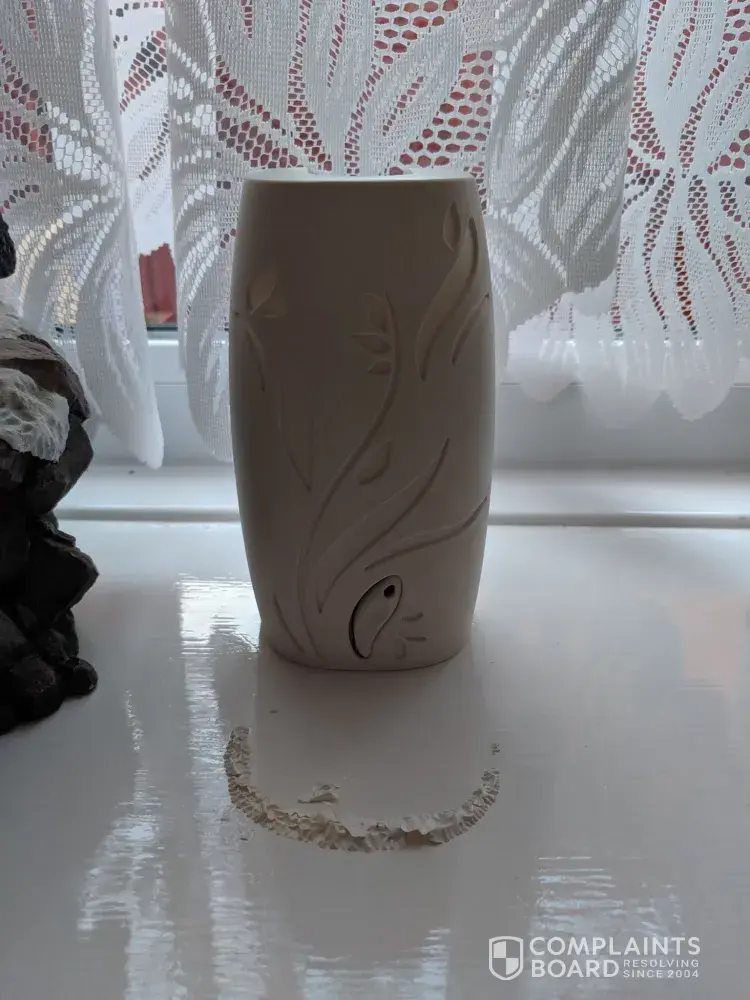 brought two glass glade candles after putting them on hour later could smell burning. as it burnt hole in my wooden table which has now got to be replaced pls contact me on [protected] this was a health hazzard as it started a firer.