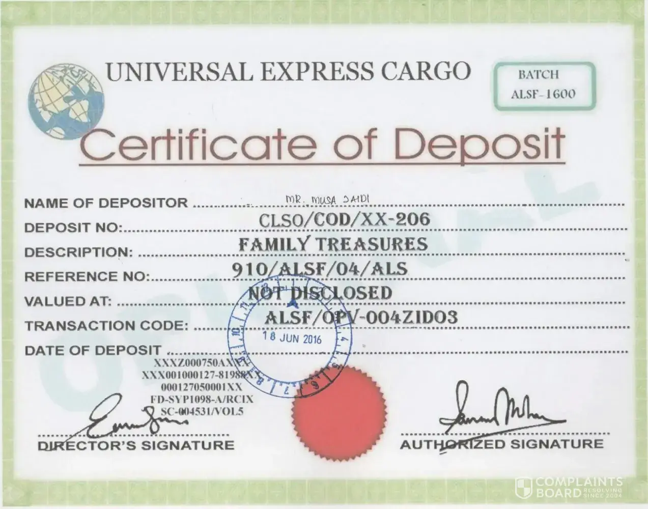 But I have deposited the US$7, 000, 000.00 in cash to the GLOB SECURITY COURIER EXPRESS COMPANY, below is the GLOB SECURITY COURIER EXPRESS COMPANY.