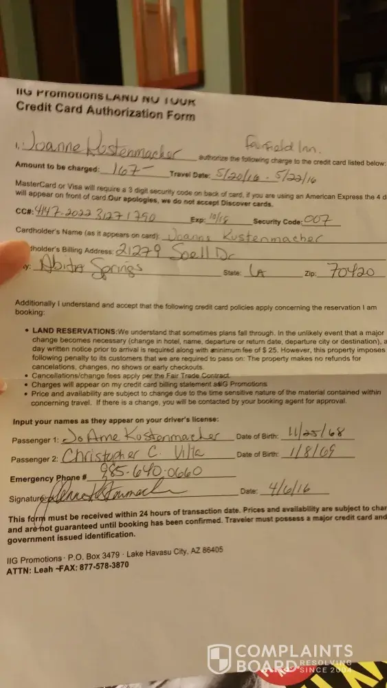 when I plan to go somewhere not even if I plan ahead. Elite in mandeville la sold me this package for global discovery vacations. They offered a promotion of getting a 3 day 2 night getaway. So I bought into the non sense and I received the offer. They asked me to pay $167 because gulfport ms was at its peak in the summer. So I paid. We went had the "free" 3days 2 nights and the morning we were set to leave a bill was put under our door. The whole amount was $145.00. I went to the front desk and the gentleman said in these exact words " im so sorry you were not suppose to see that it should have never been put under your door" and the apologized. So this means I did not get a "free" getaway. I paid them $167.00 and I am upset! I feel I am out $312.00 dollars. $145 for the weekend they should have paid for and the $167 I paid them. I am going to be calling the bbb wednesday on elite, global discovery and igg promotions. If you need me in a class action lawsuit i'm all in! Thanks