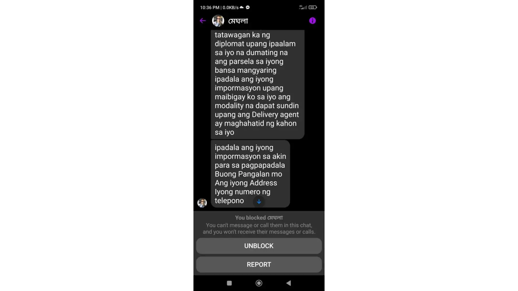I was encountered like that nagpakilala xa Sonia Dickson tga Syria ,nagpapatago Ng Pera,at nanghingi Ng information TS ngayon nagchat naipadla ndw nya parcel at my babayaran dw ako ,e ndi nmaan ako pumayag na ipadala nya scammer pala to Ng tingnan ko ngayon,pls help