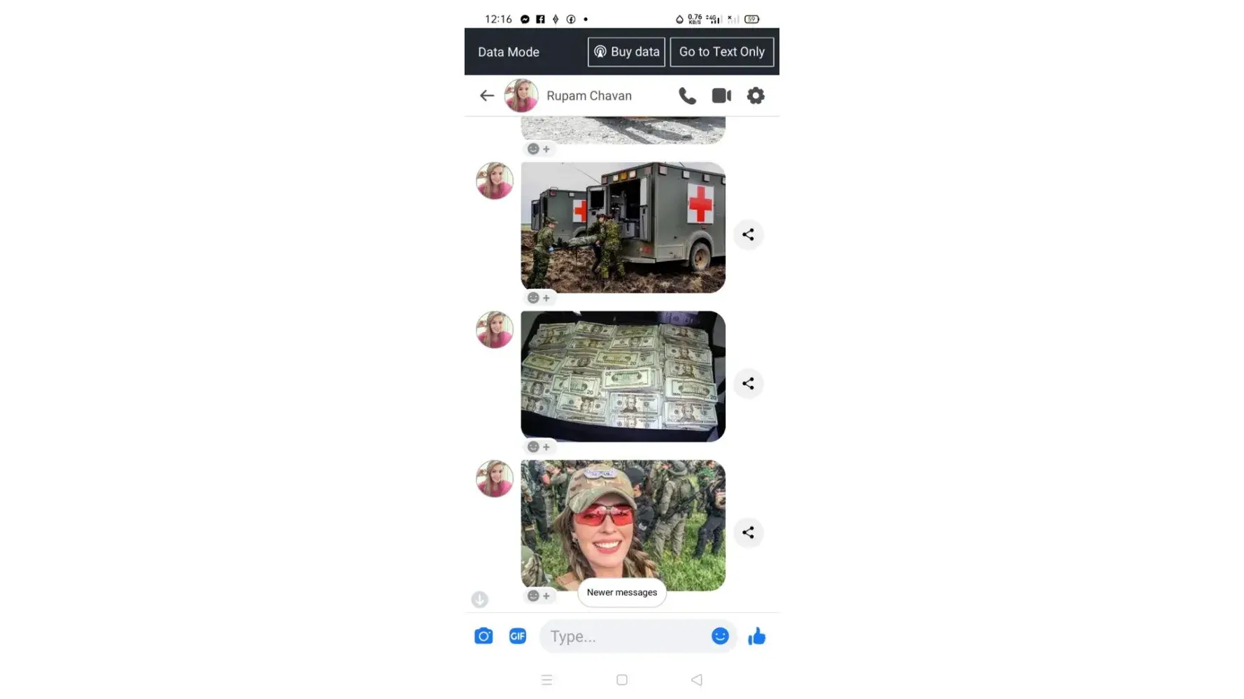 Saya juga baru dapat chat dari perempuan yang mengaku sebagai tentara