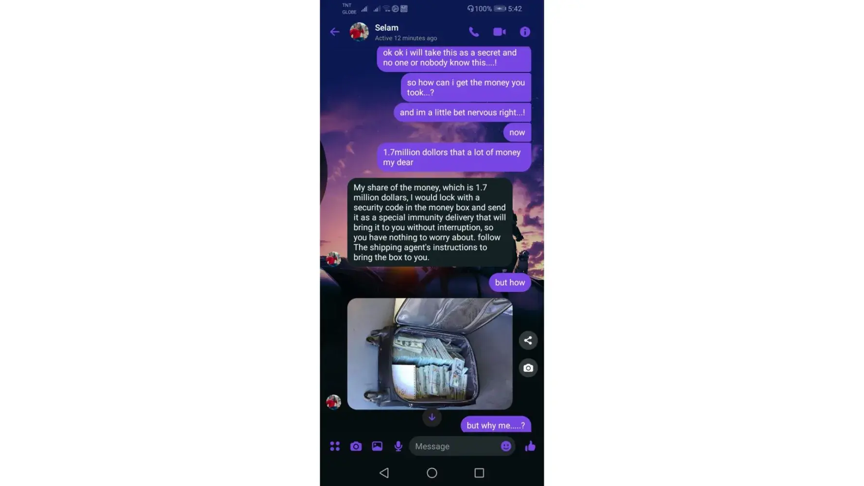 same pala un sa akin may nagpadala rin ng ganyan akala ko una totoo un pala scammer