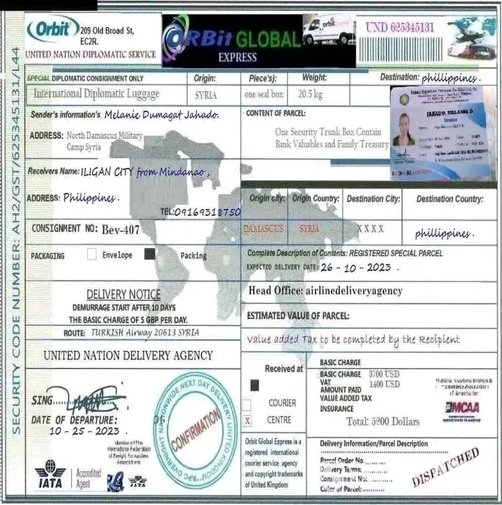 Sa akin din, nag message nag pa kilala xa c Sopia Jackson, nagpadala na confiscated na pera sa syria,,, pero na review ko dito, mukhang scam pala to.