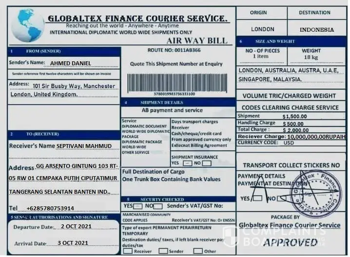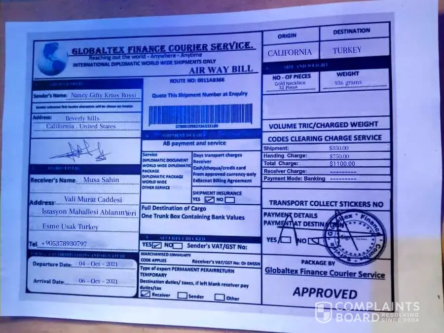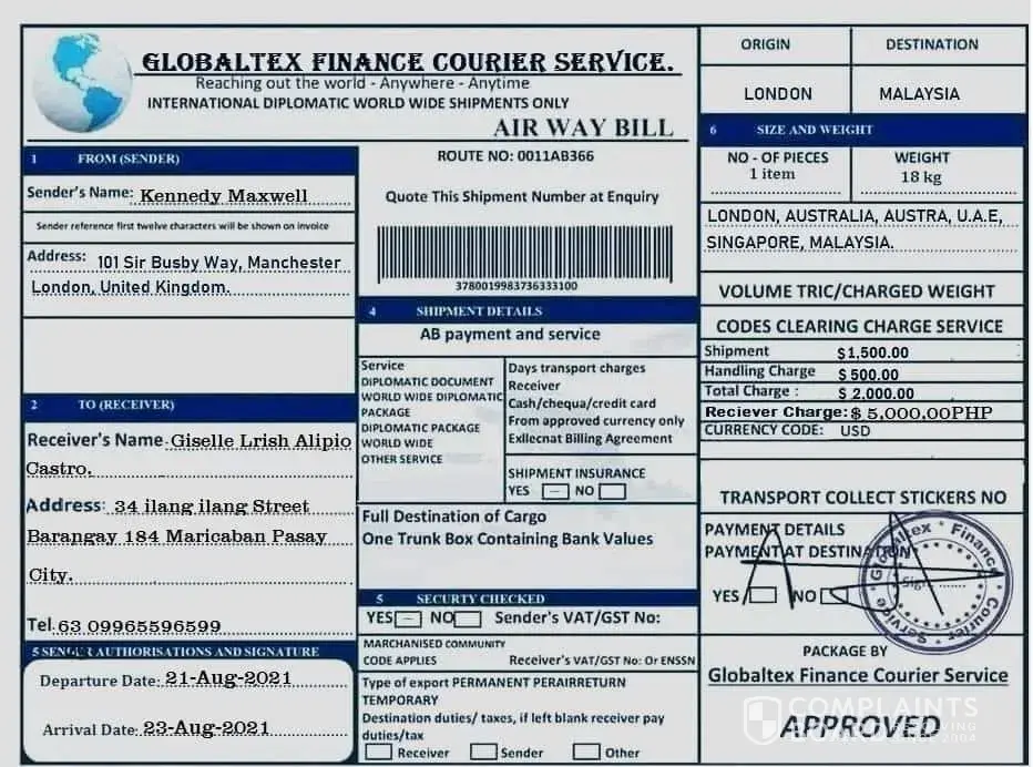 GlobalTex Finance Courier Service review: Courier/parcel ( 163 comments)