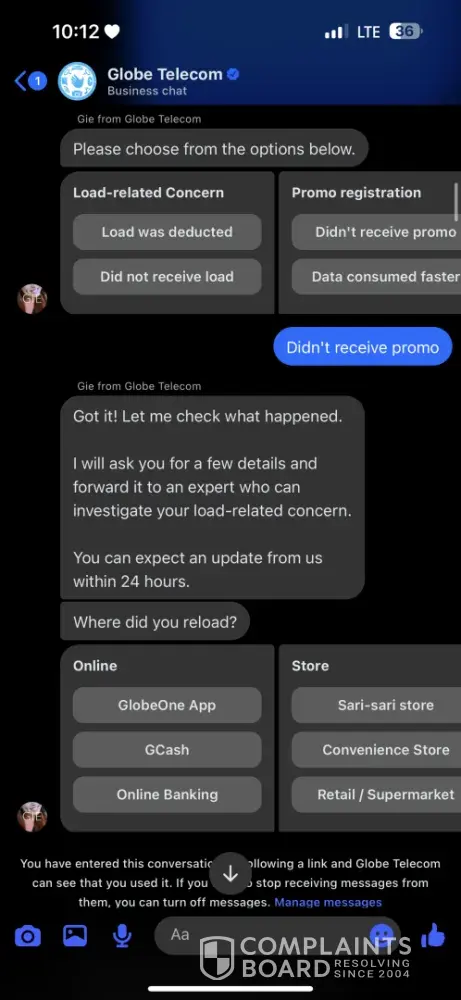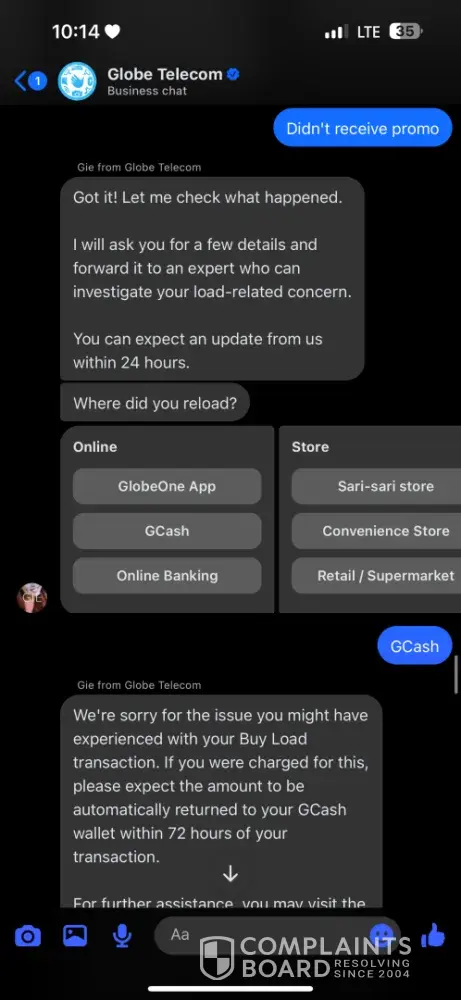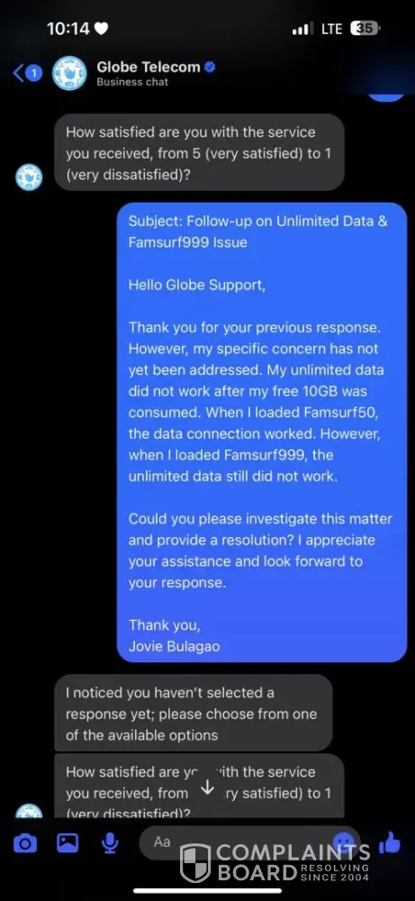 Read full complaintSubject: formal complaint against globe – non-delivery of famsurf999 promo