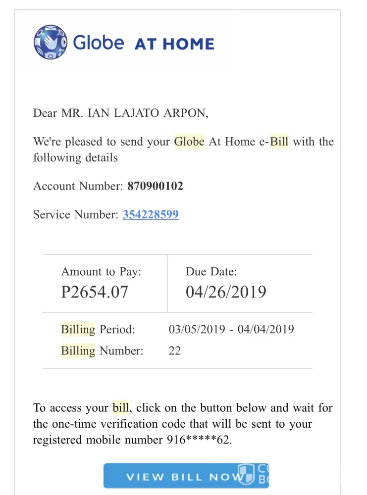 For 2 or 3 instances, your organization did not directly send me my Globe bill (PDF file) through my email. Instead your billing service sent me an email advising me to access my bill though a procedure I did not agree to (please see below).