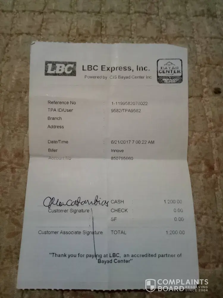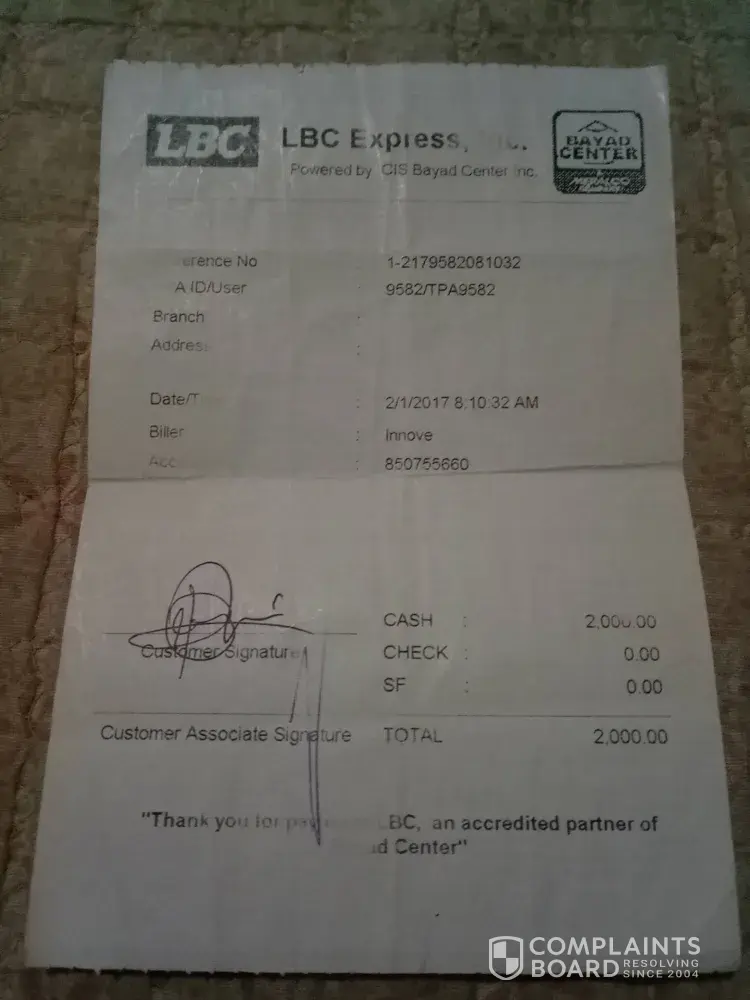 Innove, taguig reference number h1000676850c, $26.56 and $1.43 charged