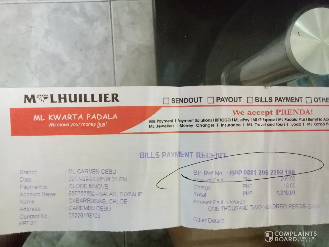 306.86 worth of fraud charges from globebillspay and innove, taguig