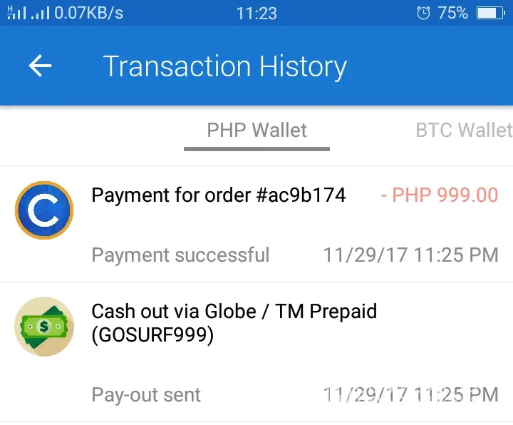 Globes billpay, taguig - reference number h200067c6cc6, $1.53 and $29.51 charged