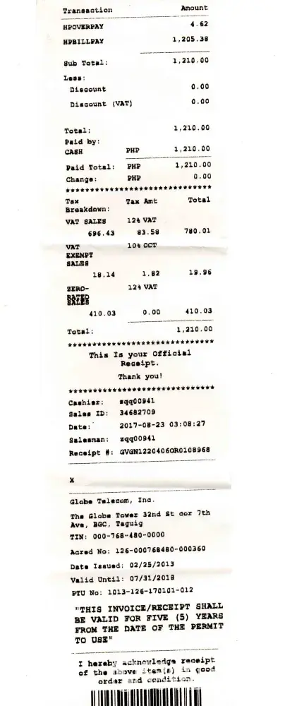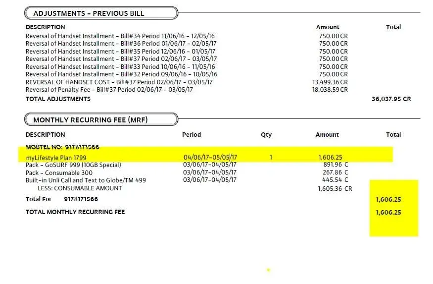 Globe Telecom bill statement