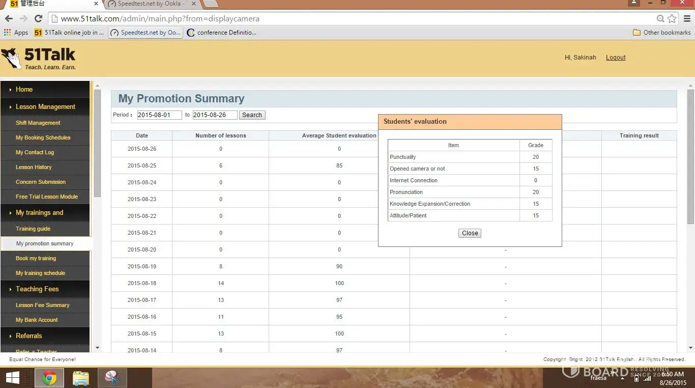 I'm an online tutor and because of the very slow internet connection (.15 to.20 download speed, and .06 to .10 upload speed), I had to cancel my classes last night, August 25, 2015. This incident has really cost me a lot--penalties, score, and rating. I called 5 times last night and according to the last agent that I talked to, I have to WAIT FOR 3 BUSINESS DAYS for the feedback. I'm supposed to be earning not losing money.
