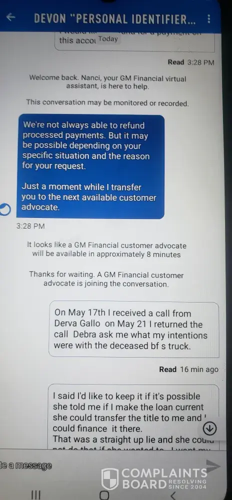 May 17th I get a call from Debra Gallo, a supervisor at GM Financial.