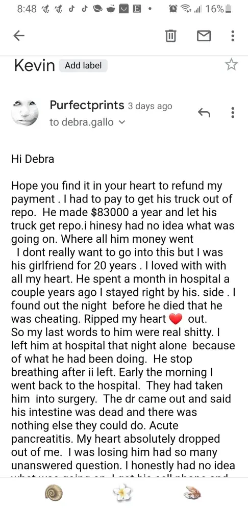 TRUCK got repo. I handed him $2000 to get it back. Said he'd pay me back. April 2nd he unexpectedly passes away.