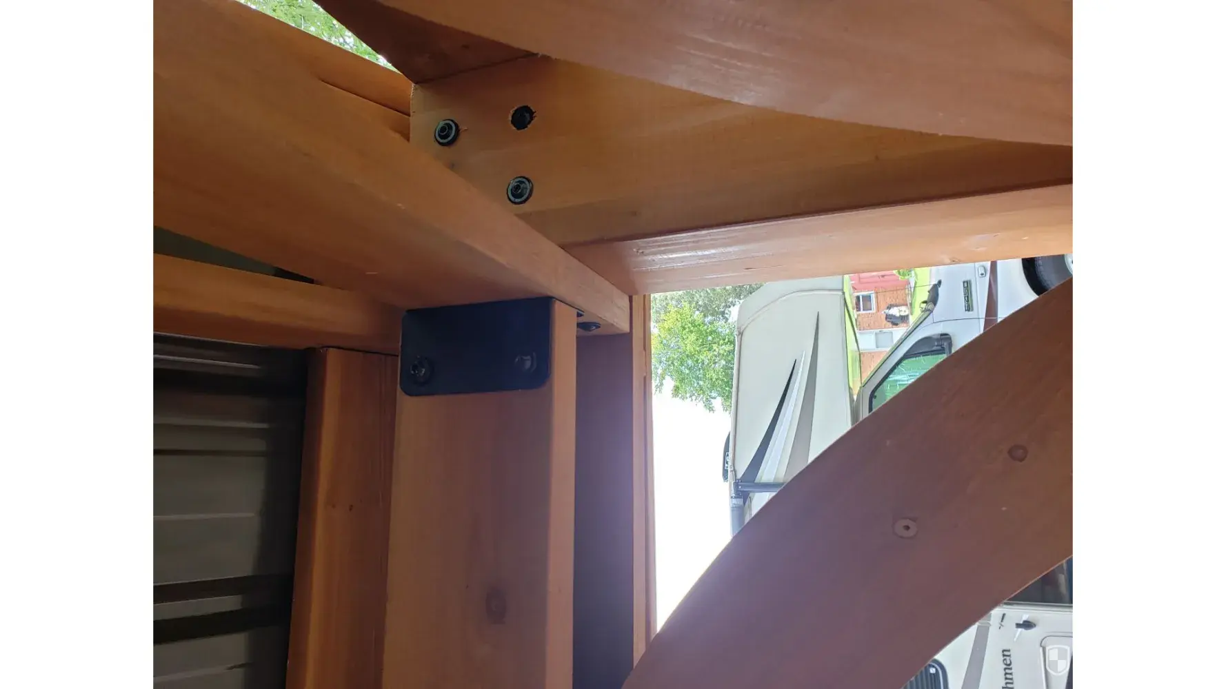 My yard is sloped which entailed raising the wooden base above ground, higher at the back than at the front.