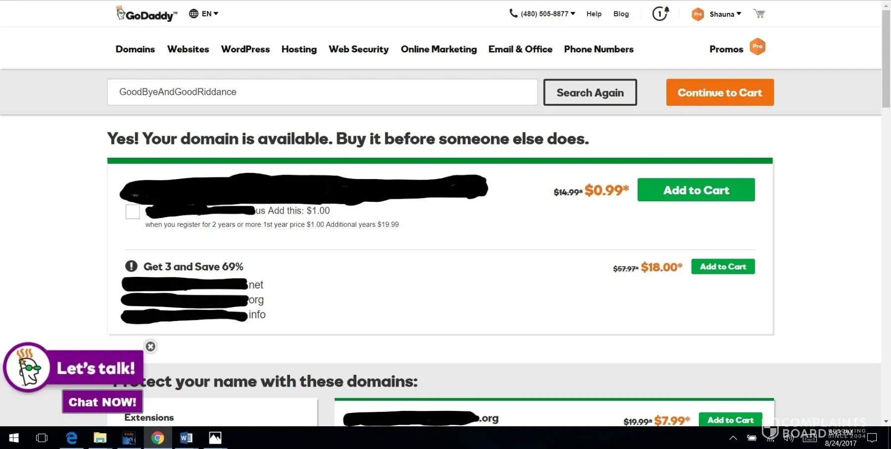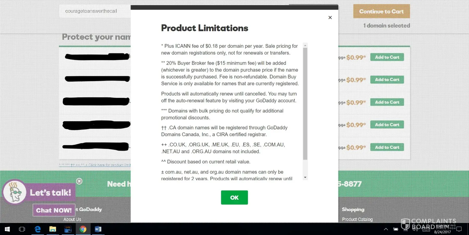 Go- Daddy complaint. 17.08.17 fourth complaint attempt 21.08.17