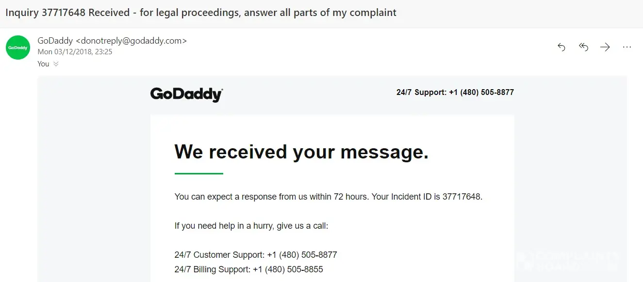 Here is the latest correspondence from Godaddy: