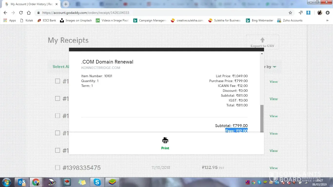 We were running a company in partnership with name of JST Business and we have domain from Godaddy and after 6 or 7 month my partner have resigned from the company after that i took handover of everything from him that took almost 6 month and after that i came to know my Konectbridge.com is got expired and I renewed that 30 January 2019 for next one and it got renewed for with no error, todays i was going to do live my website on that domain but that was not showing in my godaddy account then i called to Customer care and they said you can't get that domain due to some internal policy issues but at that time i haven't get any error while renewing the domain.