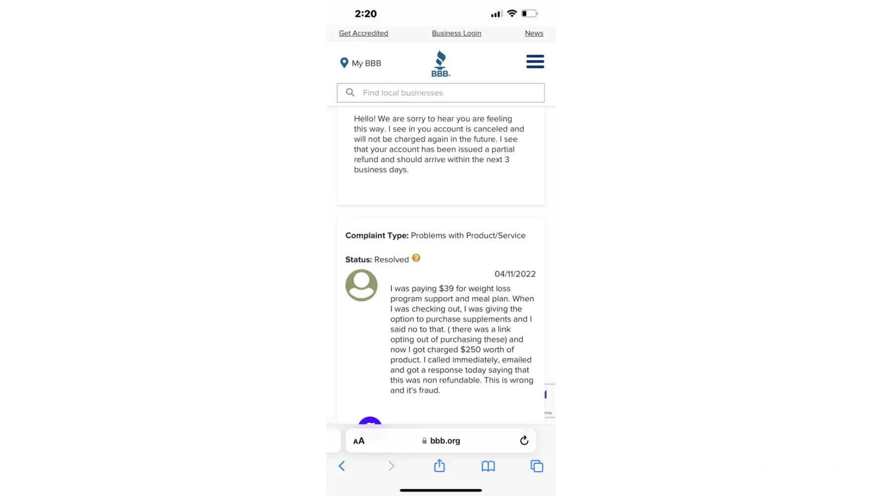 Desired outcome: I want a full refund. I want to be able to dispute this and for the company to take accountability and listen to their customers.