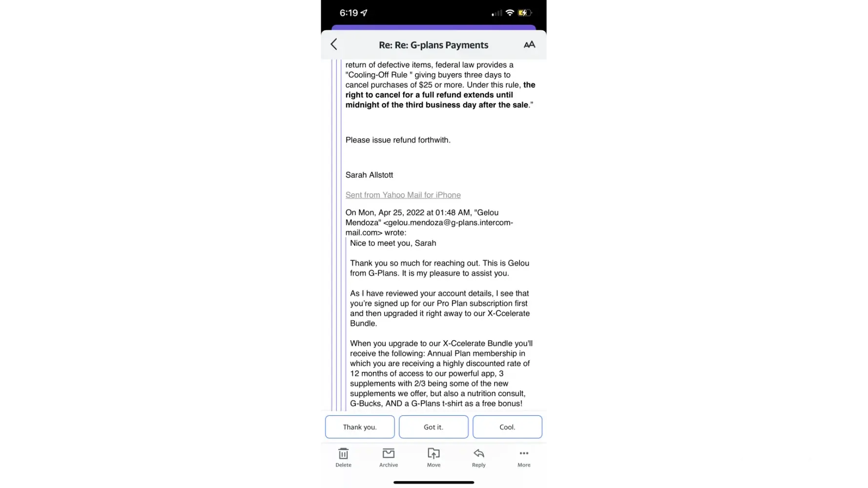 Desired outcome: Refund!