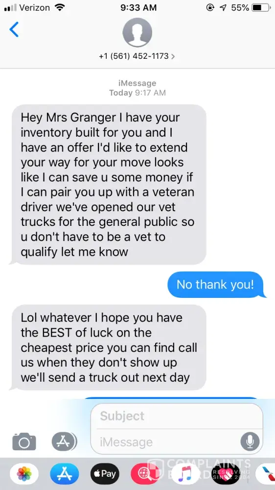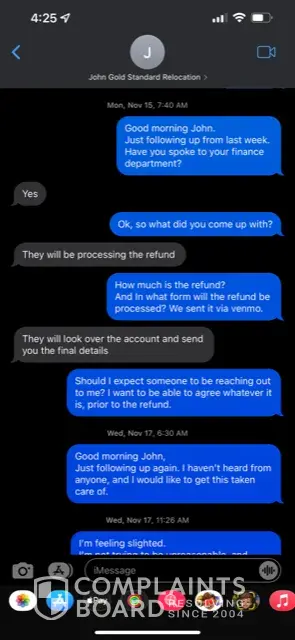 Again, photos of the conversations and way of payment will be posted. I selected the photos in order of the conversation, but I am unsure if it will post in the correct order. Just take note of the dates. Hope this helps future movers, and also hoping for a better outcome for a refund. We will see. On to the next place to file the same complaint.