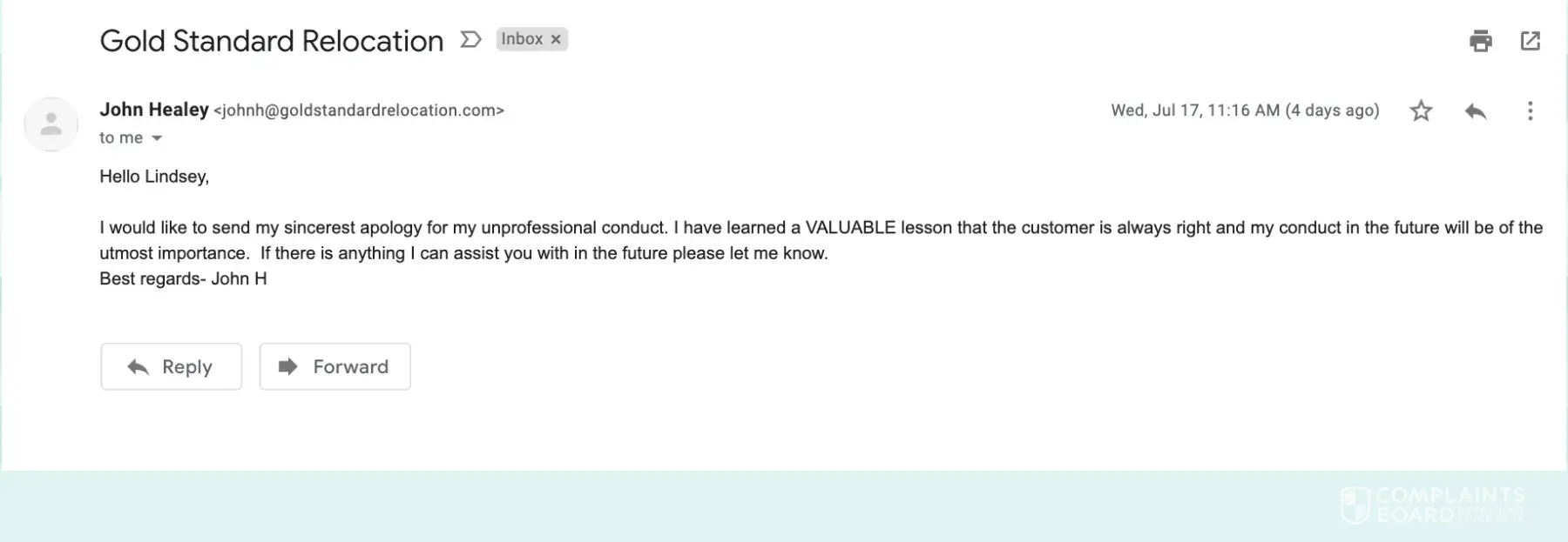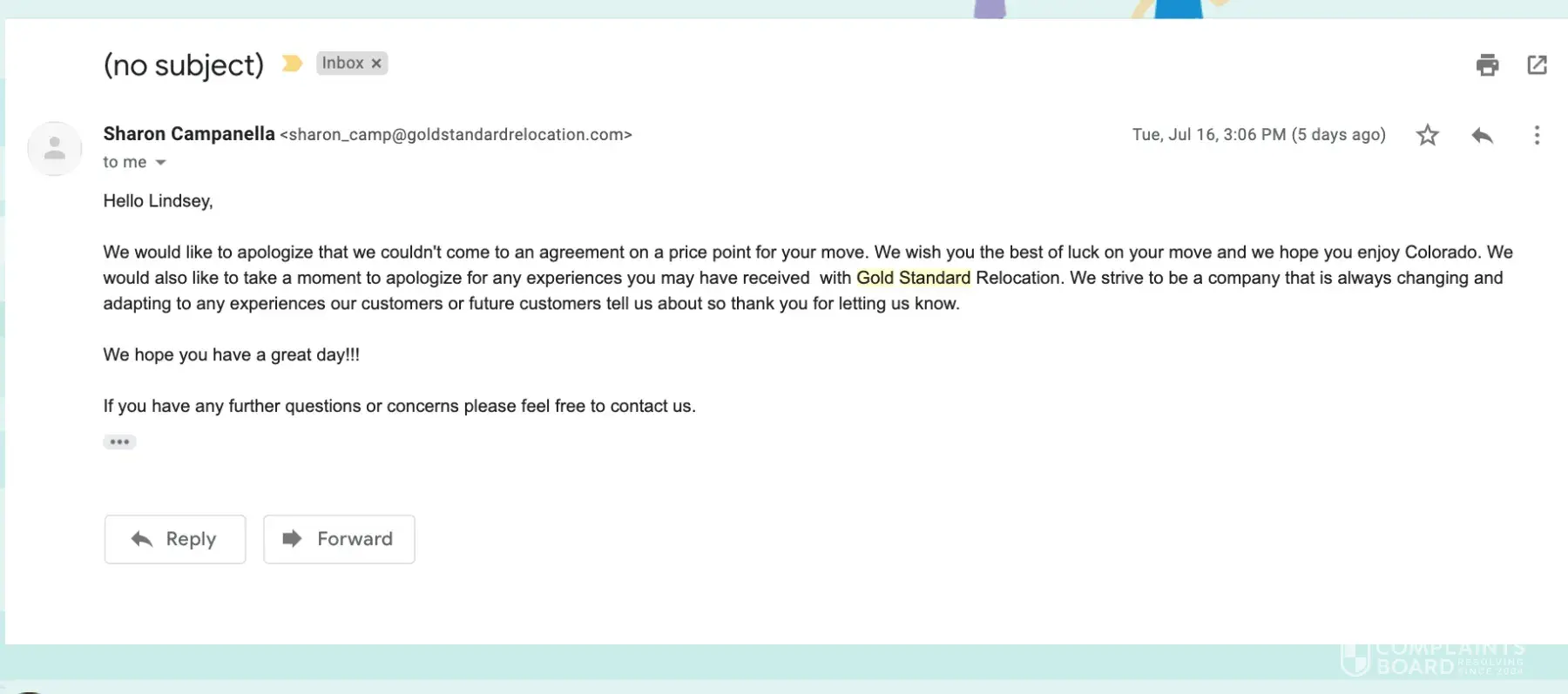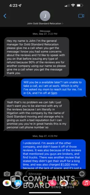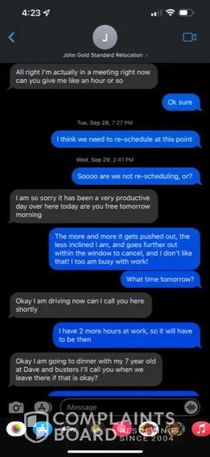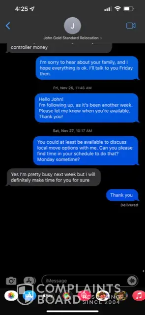 Long story short, I ended up doing the job of Gold Standard. I was the one who had to persistently contact the 3rd company's dispatch manager because I stopped getting answers from Gold Standard and from the moving company. If I hadn't been my own advocate, and done the job I paid Gold Standard to do for me, I don't think I would even have my things.