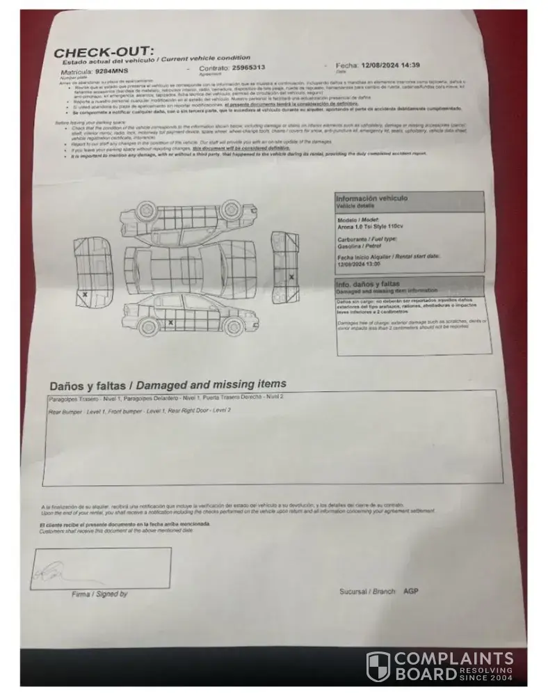 I did complain. I did not have any other possibility than book another car for 1 day. The least that this company can do is reimburse 100% of the payment of 379 euros.