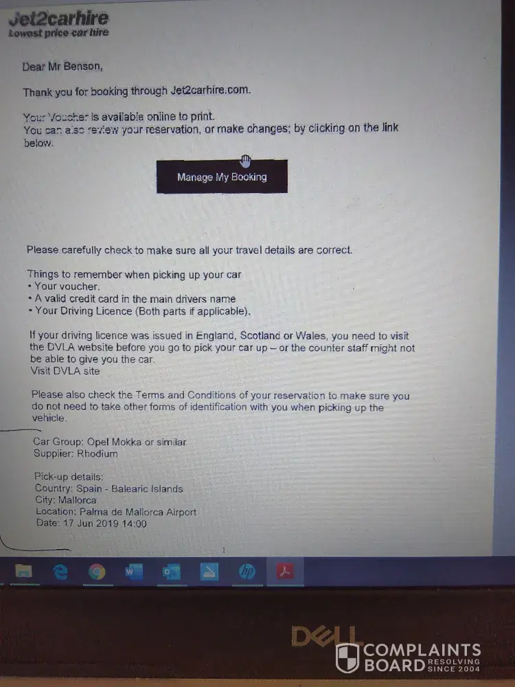 Have reported to jet2carhire.com, and also to natwest chargeback team.
