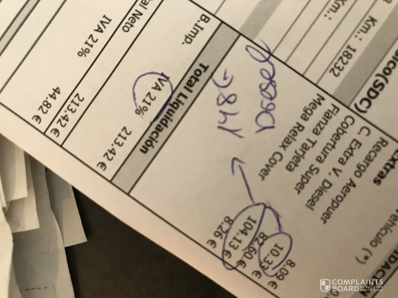 Phil Massey, how I feel your pain! As pretty much exactly the same thing happened to me just last week, hiring from them in Alicante. Though rather than charging me for fuel, they've charged me for 150 euros for 'damage'. This is for a dent I showed their operative on collecting the car, who went over it with some kind of scanner and said it was too small to matter and that it didn't need recording on the paperwork. They've been fined twice by regulators, and can't help but feel that one day they'll get their comeuppance. Terrible, terrible company.