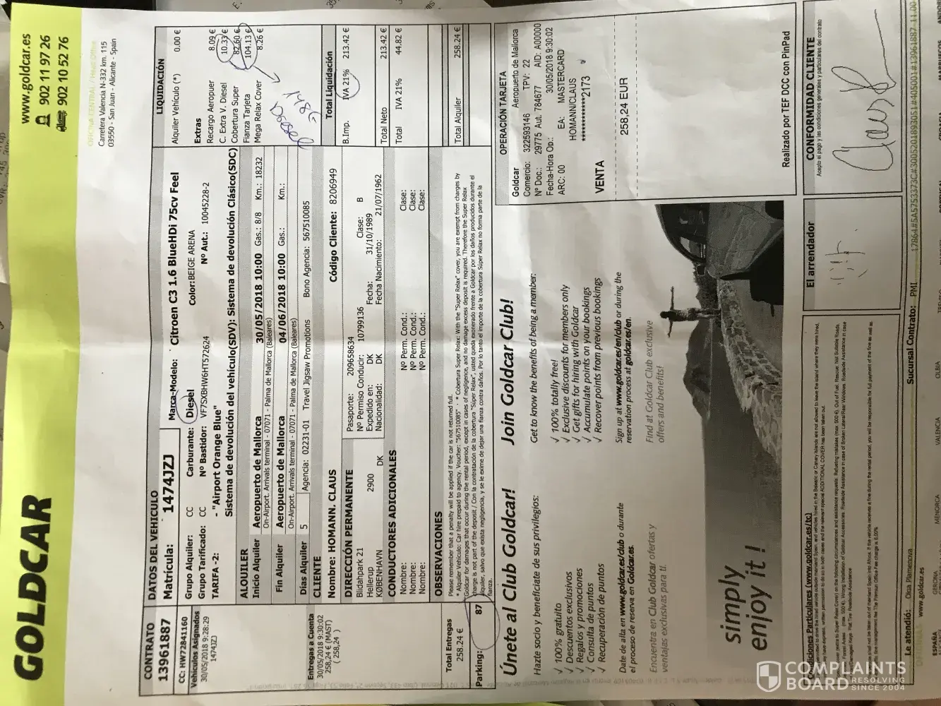 In May 2018 I rent a car at GOLDCAR at Mallorca Airport