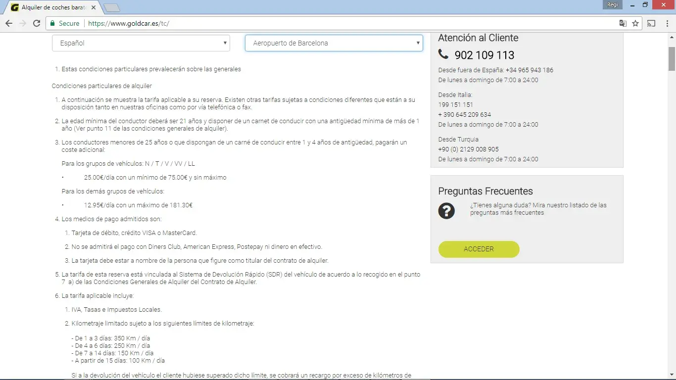 Goldcar has turned out to be the worst and biggest cheat car rental company i have come across in 22 years of renting cars around the world. One charge after another keep getting added on at every step of teh way... one nasty surprise after another.
