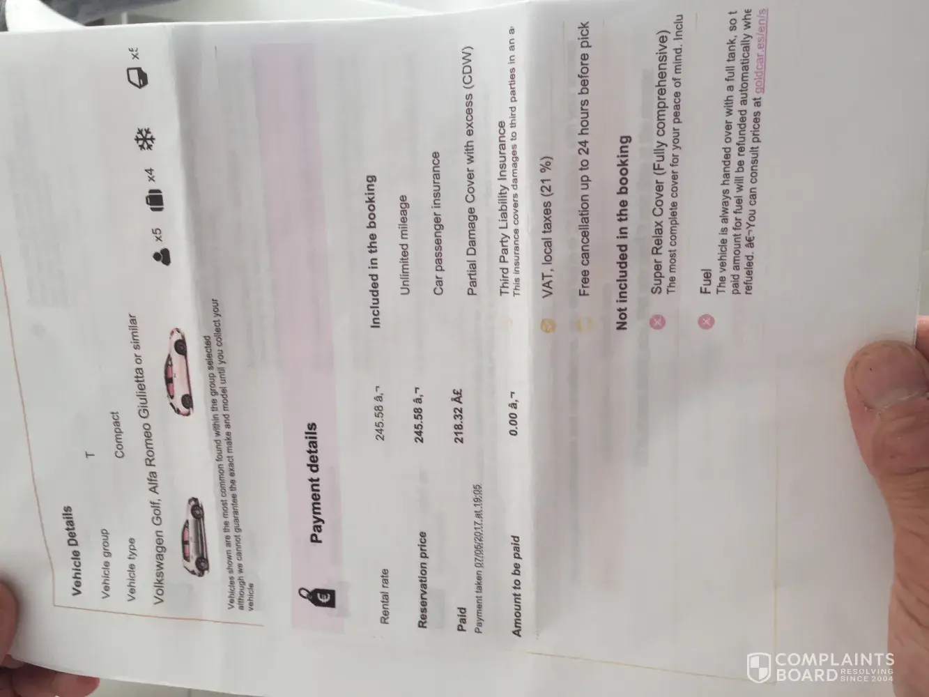 goldcar, scam and dishonest, misleading company terms