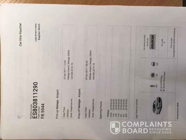 My complaint is regarding a car rental I’ve purchased online on Goldcar website.